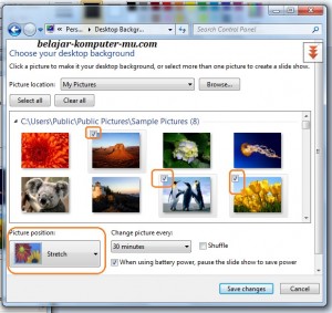 Langkah awalnya sama hanya saja dilanjutkan dengan menentukan gambar atau foto yang mana yang akan digunakan sebagai wallpaper atau background windows 7. Mengganti wallpaper di laptop pc sangatlah mudah dan sederhana.